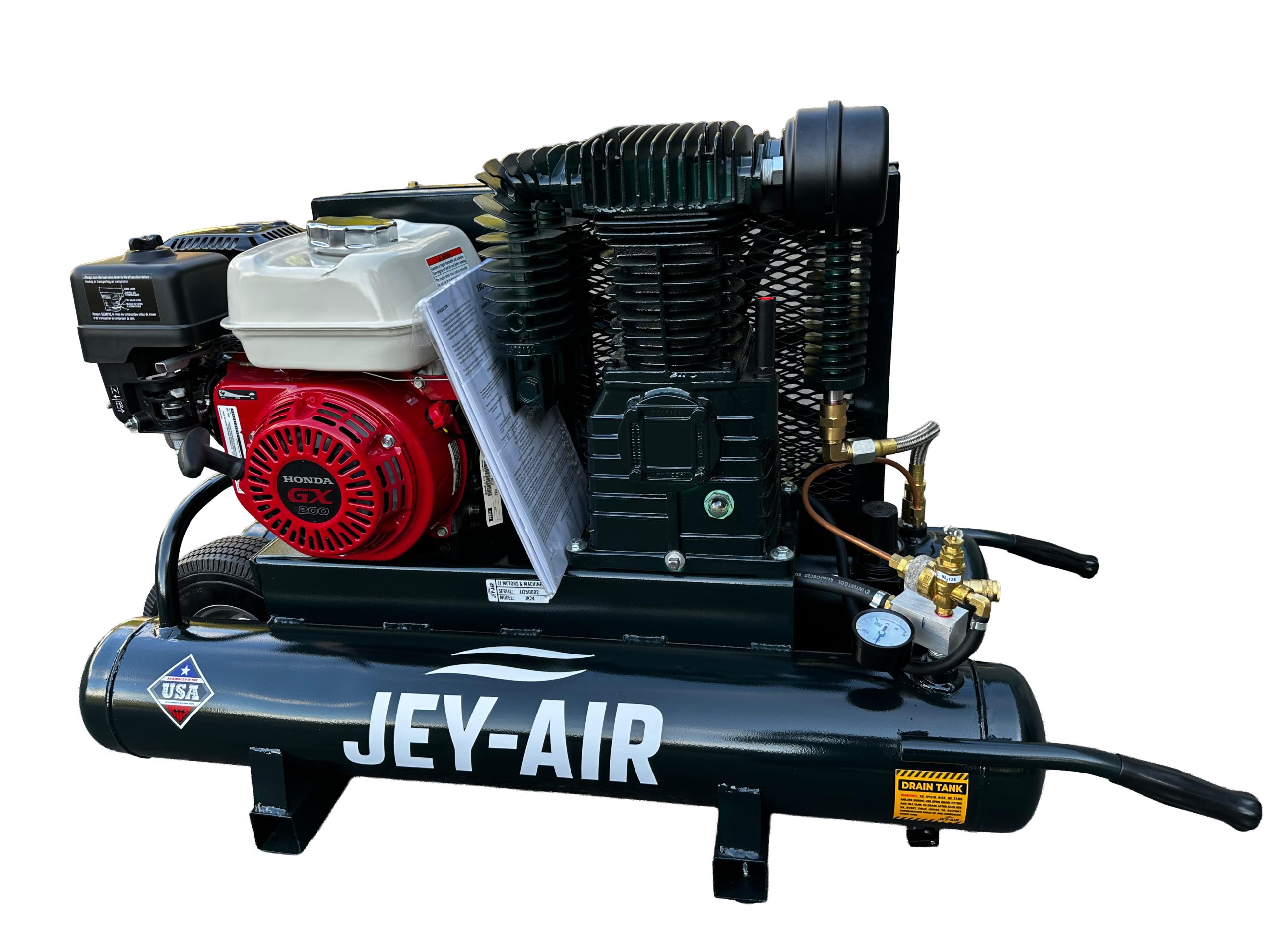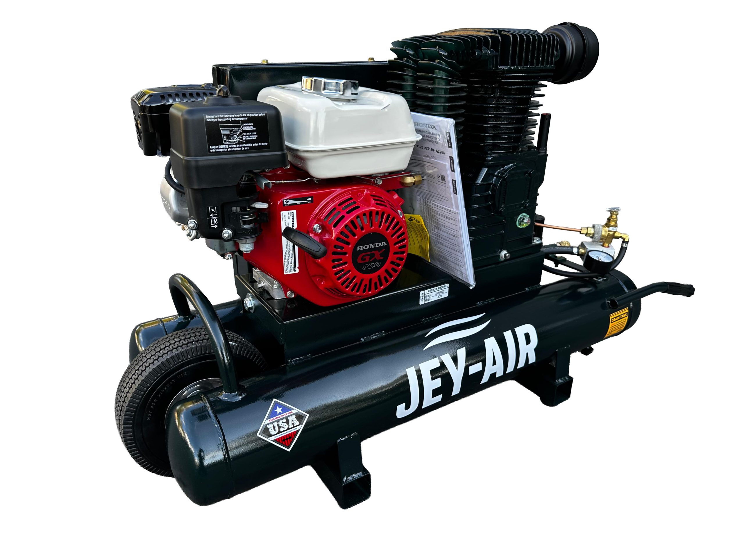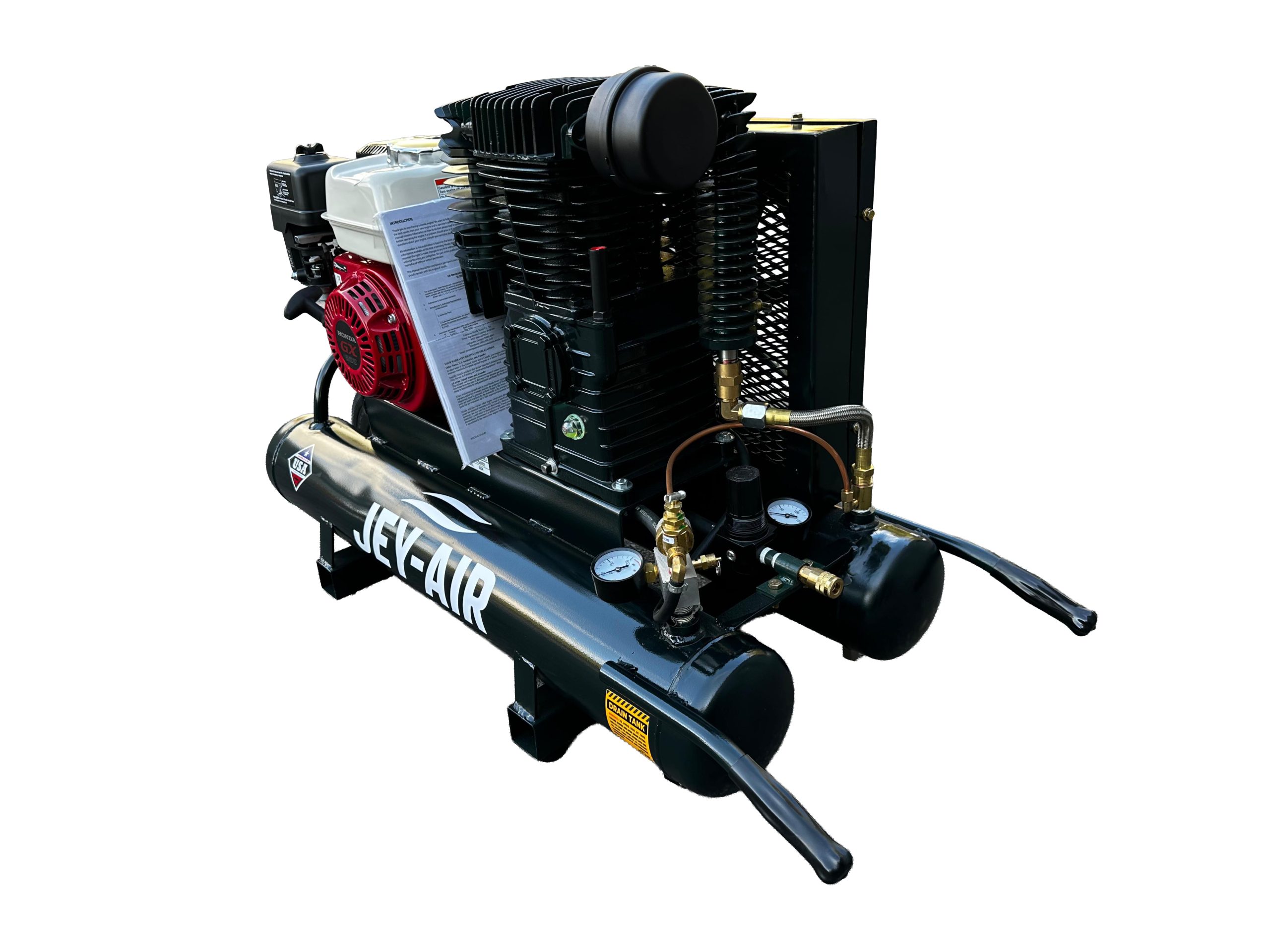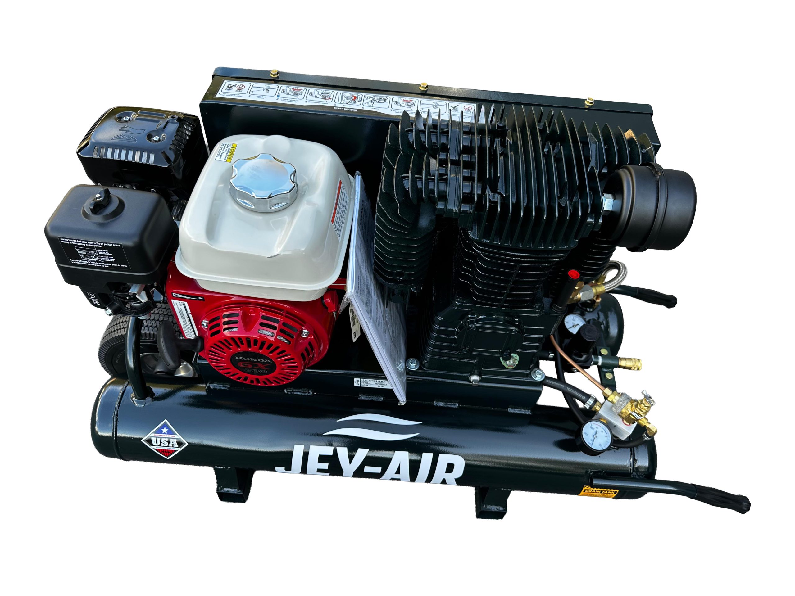 - Type: Gasoline-powered, two-stage air compressor